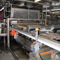 Für die Fabrikation grosser Teile wird in der Linie in zwei Arbeitsschritten ein Sägeprozess durchgeführt. Um den Materialfluss nicht mit einem Reversierbetrieb zu stören, wurde die Maschine als Inline-Säge mit Materialfluss von Rechts nach Links konzipiert.