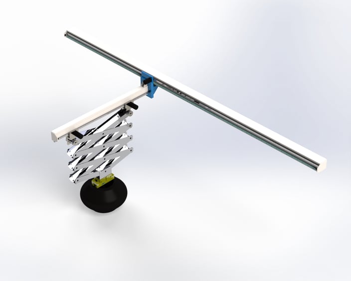 Our scissor lift Z-axes (vertical axis), combined with a horizontal cantilever on the portal robot, are particularly suitable for applications with a long Z-axis lift and X-Y positioning requirement.