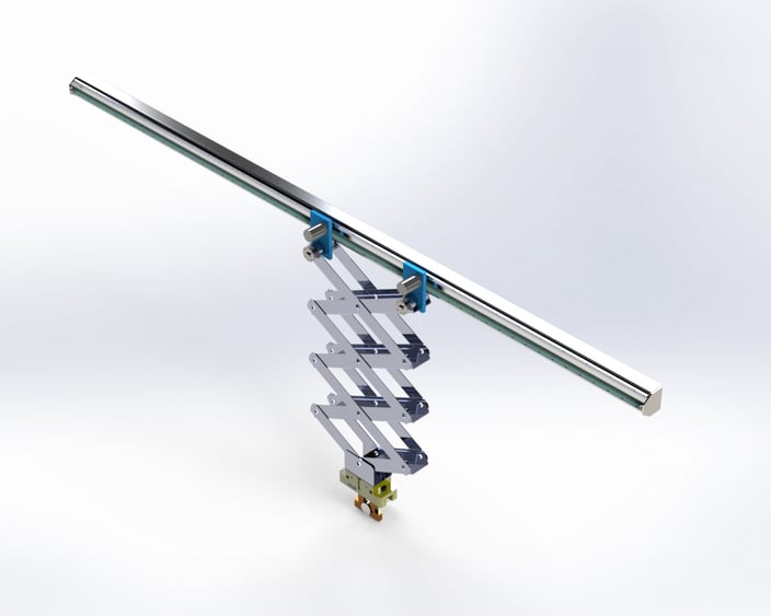 Our scissor stroke Z-axis (vertical axis) are particularly suitable for low room heights and / or when a very long vertical stroke is required. Due to the scissor lift, the vertical axis can be